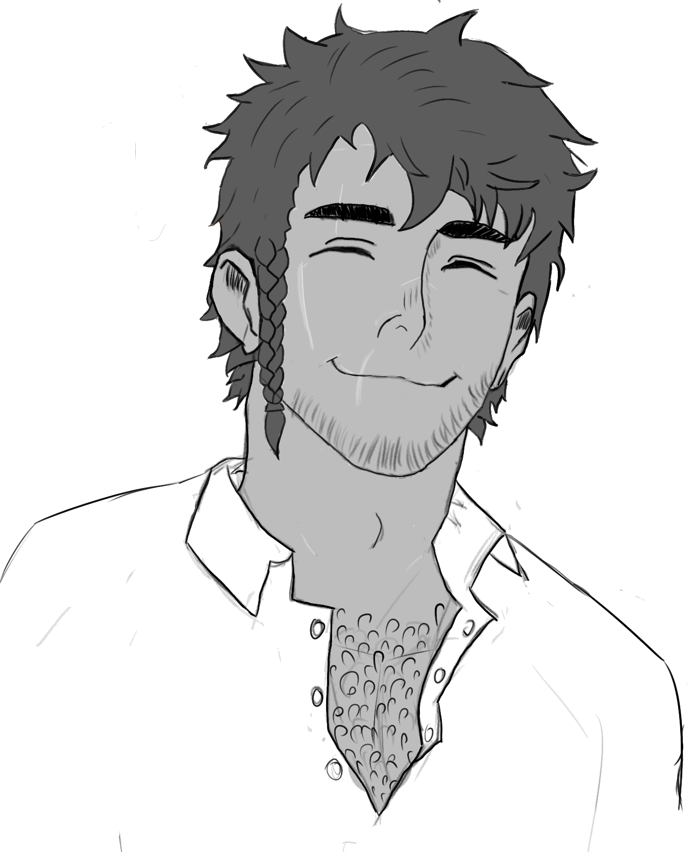 Ein groß gebauter Mensch, mit immer einen breiten lächeln auf den Lippen. Selbst im Kampf trägt er keine Rüstung, da er stets leicht auf den Füßen sein will.